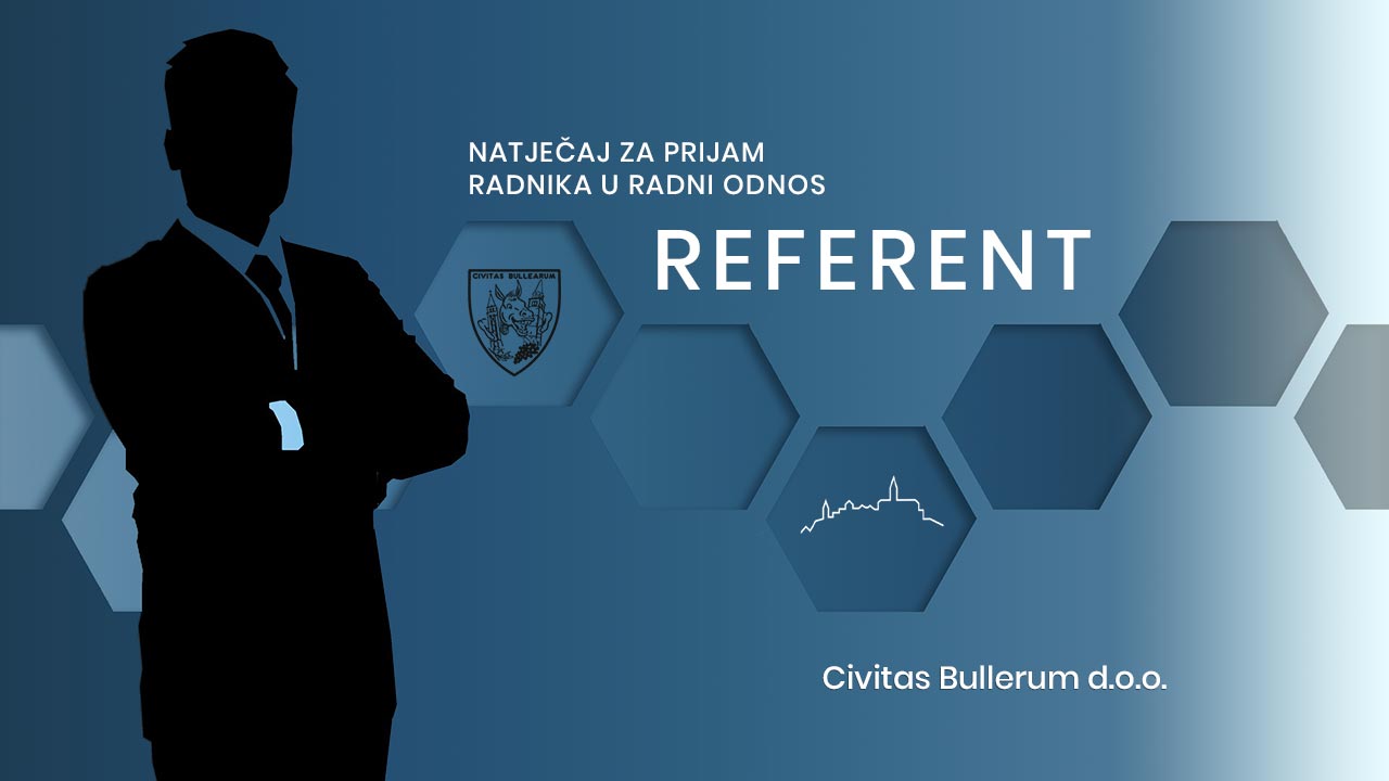 Civitas Bullerum d.o.o. za komunalne djelatnosti raspisuje natječaj za prijam radnika u radni odnos na radno mjesto referent (m/ž).